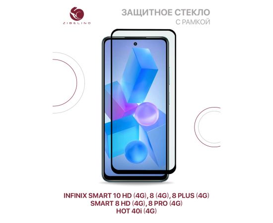 Защитное стекло для Infinix Smart 10 HD (4G), Smart 8 (4G), Smart 8 Plus (4G), Smart 8 HD (4G), Smart 8 Pro (4G), Hot 40i (4G) с черной рамкой (Инфиникс Смарт 10 8 Плюс Про HD Хот 40i)