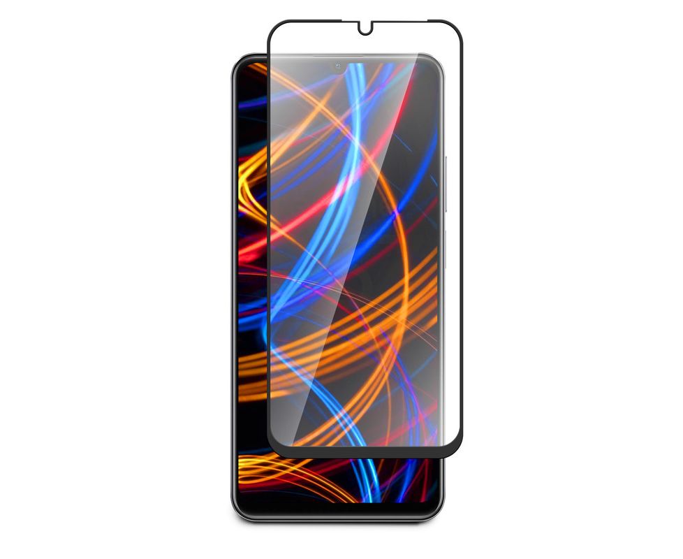 материал: закалённое стекло, алюмосиликатный клеевой слой, твёрдость 9H, скруглённые края, черная рамка