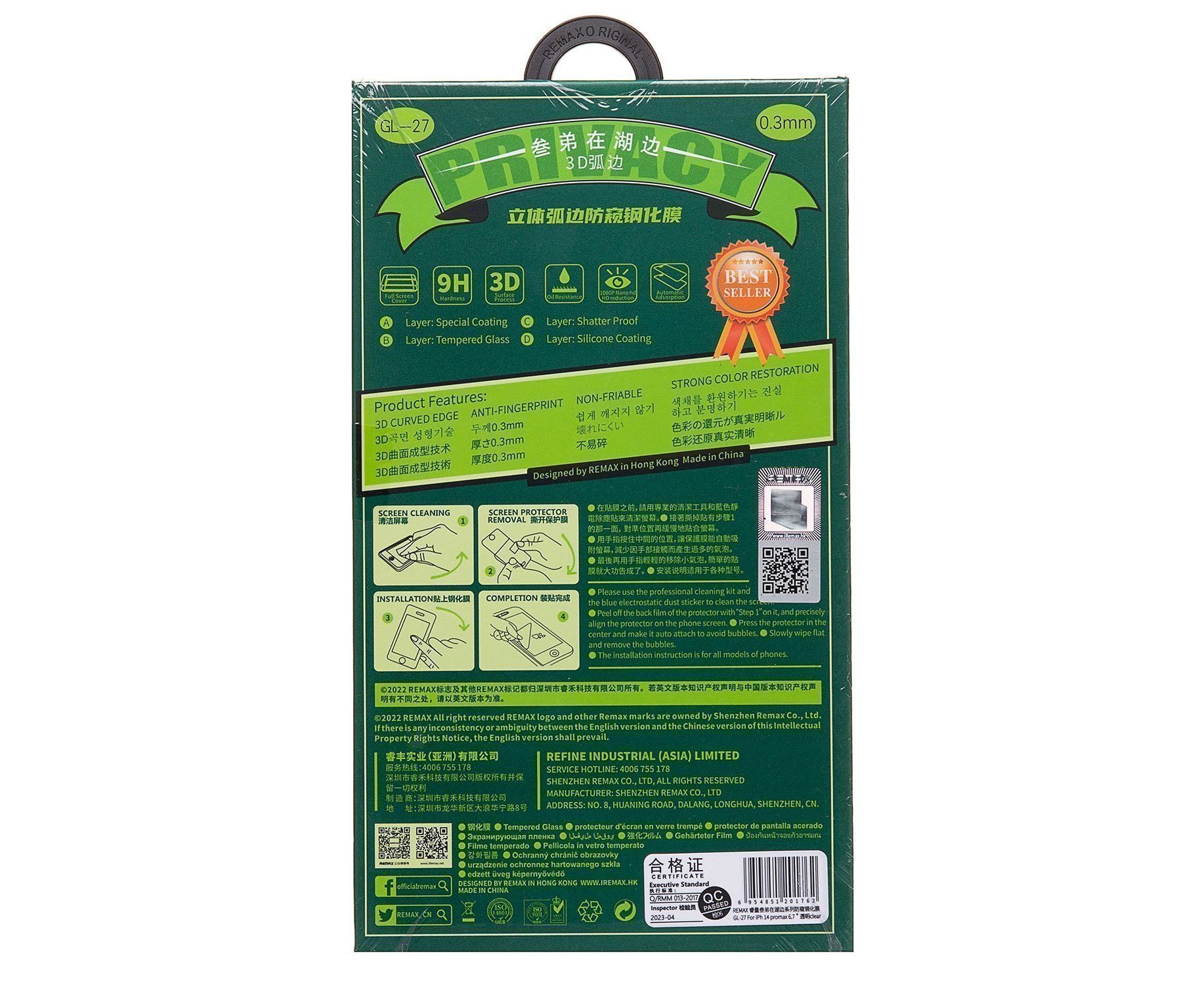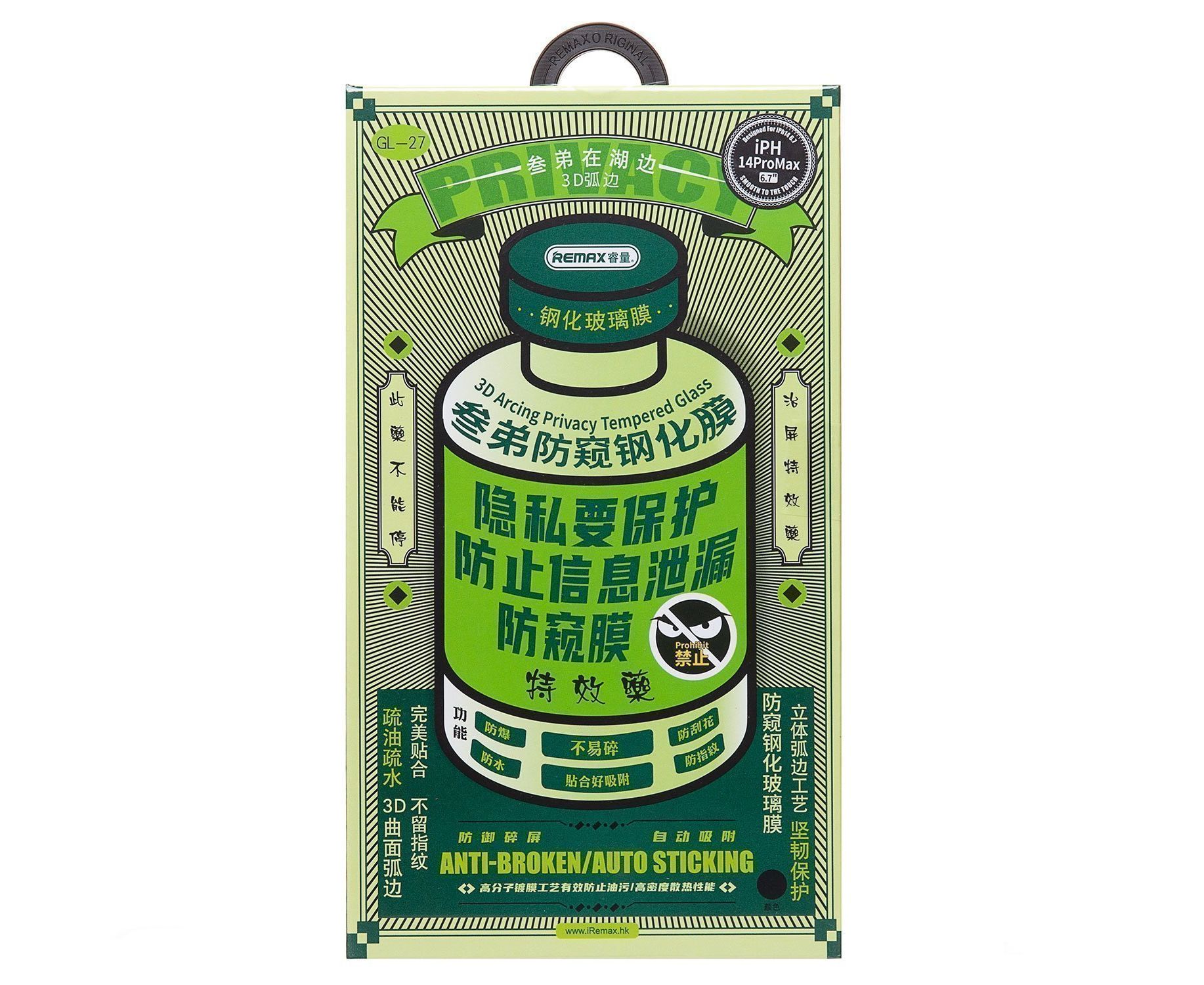 Защитное стекло Full Screen Remax Arcing Privacy GL-27 для "Apple iPhone 14 Pro Max" (black)(220103)