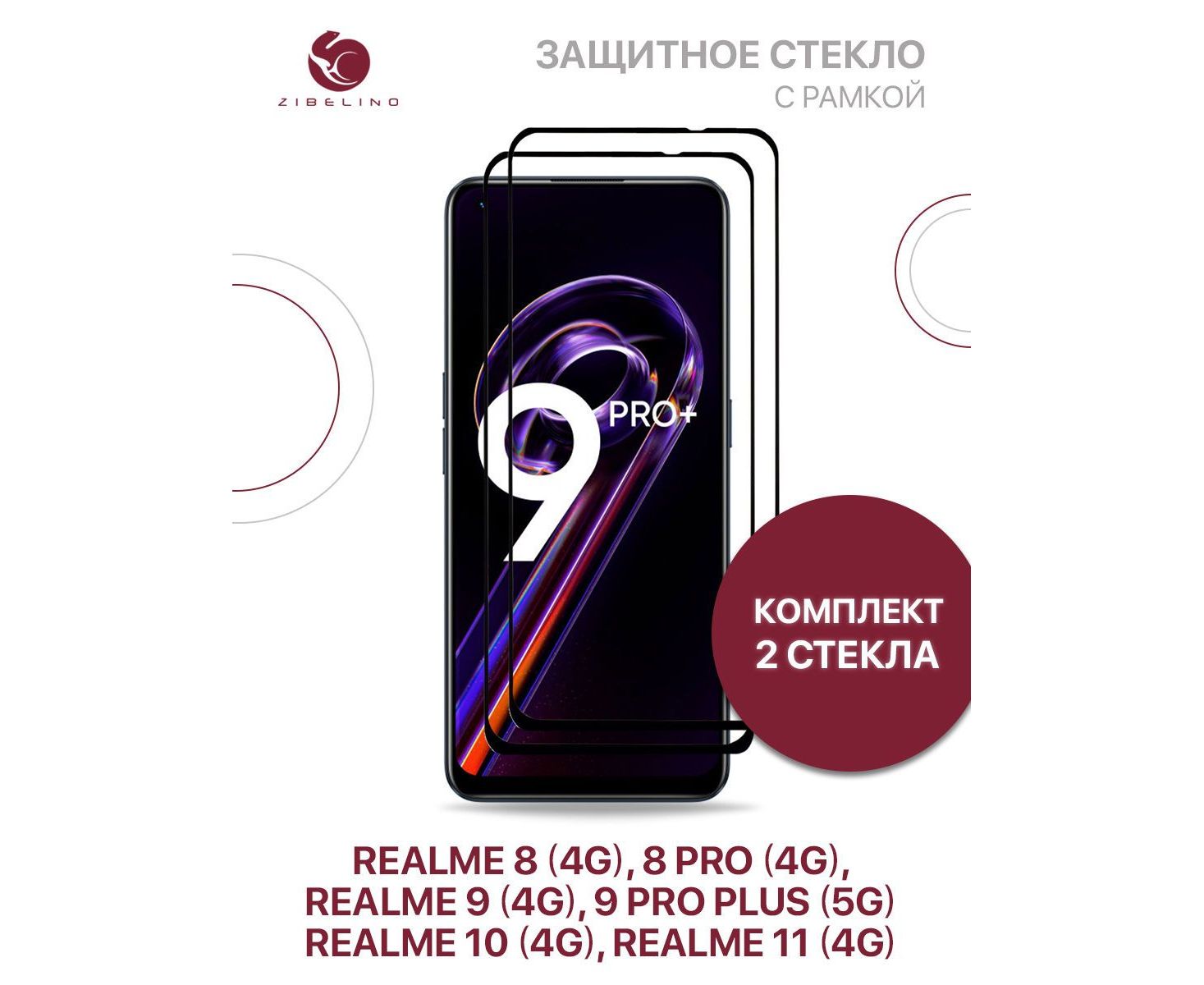 Защитное стекло (Комплект 2 шт) для Realme 11 (4g), 10 (4g) ,8 (4g), 8 Pro (4g), 9 (4g), 9 Pro Plus (5g) с рамкой (Реалми 8 Про 9 Про Плюс Реалми 10 11)