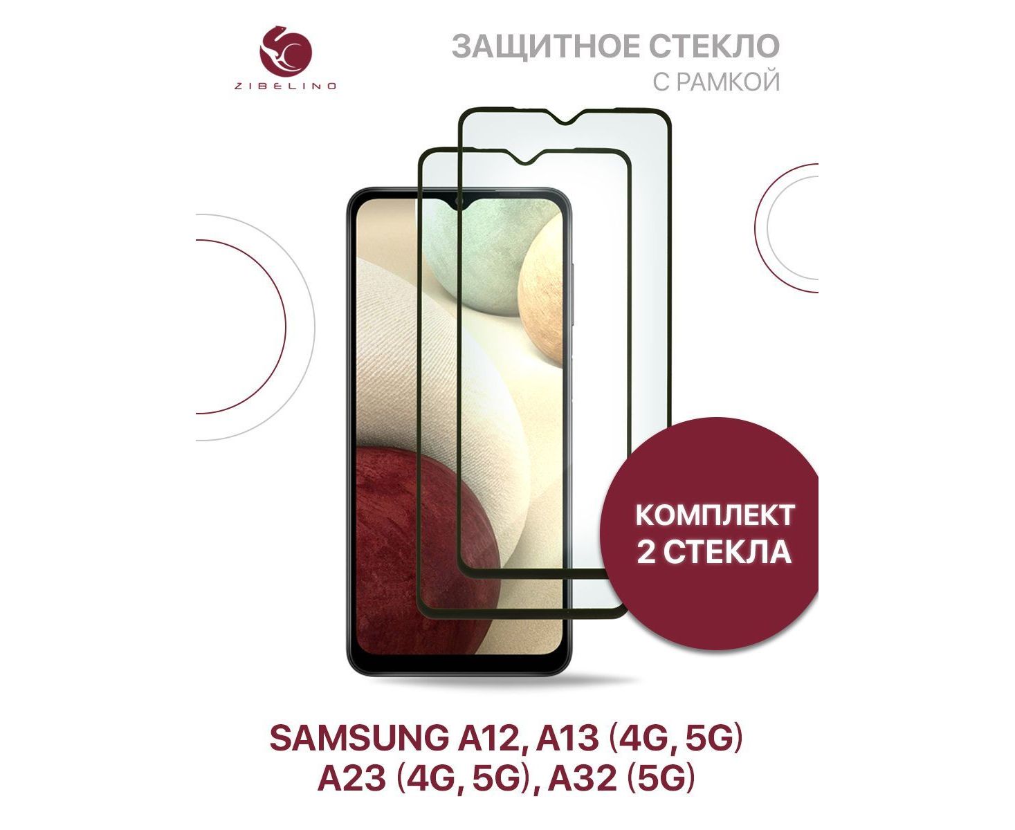 Защитное стекло (Комплект 2 шт) для Samsung Galaxy A12, A13 4G 5G, Samsung A23 4G 5G, A32 5G с рамкой, Самсунг Галакси А12 А13 А23 5G А32