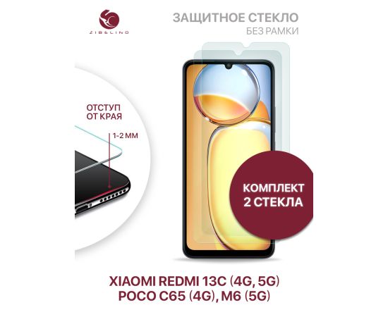 Защитное стекло (Комплект 2шт ) для Xiaomi Redmi 13C (4G, 5G), Poco C65 (4G), Poco M6 (5G) без рамки, с отступом от краев (Ксиоми Редми 13С (4G, 5G), Поко С 65 (4G), Поко М6 5G)