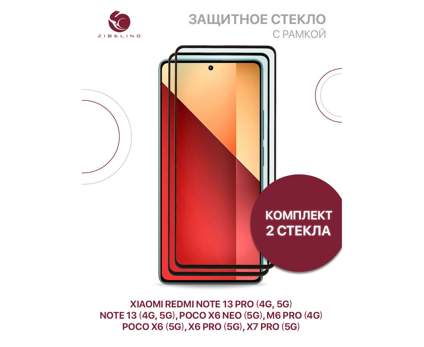Защитное стекло (Комплект 2шт) для Xiaomi Redmi Poco X7 Pro (5g), Note 13 (4g/5g), Note 13 Pro (4g/5g), Poco X6 (5g), X6 Pro (5g), X6 Neo (5g), M6 Pro (4g) с рамкой, с вырезом для камеры (Ксиоми Редми Нот 13 Про, Поко Х6 Про 5G)