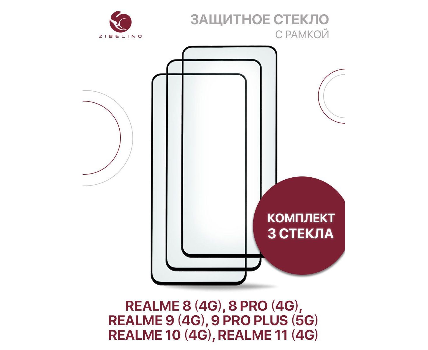 Защитное стекло (Комплект 3 шт) для Realme 8 4G, 8 Pro 4G, 9 4G, 9 Pro Plus 5G, Realme 10 4G, 11 4G с рамкой, Реалми 8 Про 9 Про Плюс Реалми 10 11