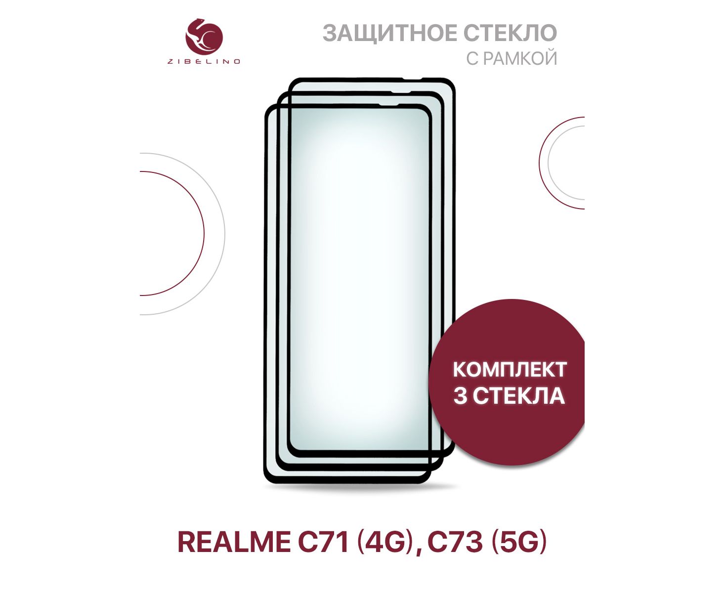 Защитное стекло (Комплект из 3 шт) для Realme C71 (4G), Realme C73 (5G) с рамкой (Реалми С71, Реалми С73)