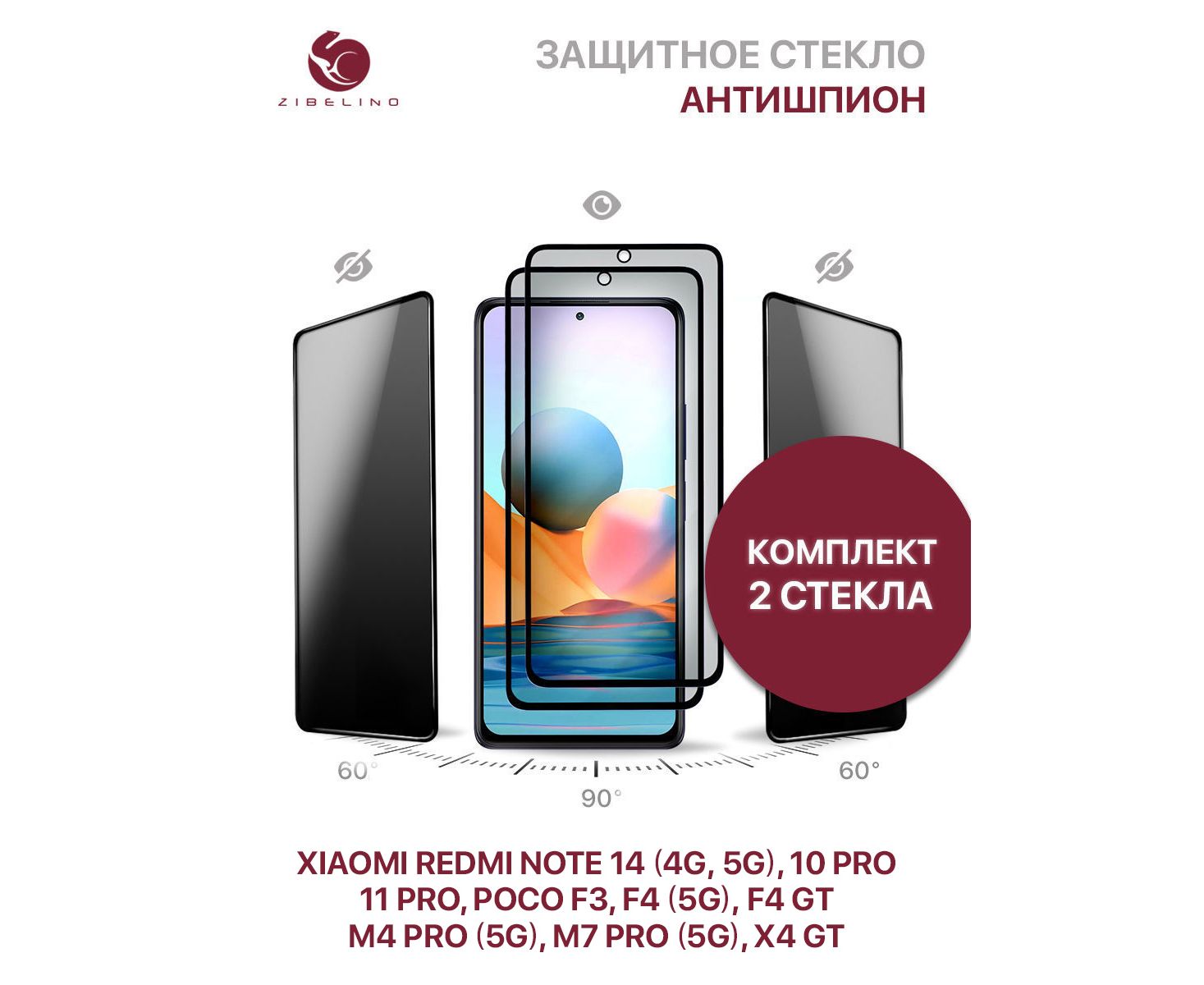Комплект из 2 шт защитное стекло для Xiaomi Redmi Note Xiaomi Redmi Note 14 4G 5G, 10 Pro, Xiaomi Redmi Note 11 Pro, Xiaomi Poco M7 Pro (5G), Poco F3, Xiaomi Poco F4, Xiaomi Poco M4 Pro 5G, Xiaomi Poco X4 GT линейка Private (антишпион), с рамкой с минимальным отступом от краев легко устанавливается и защищает весь экран смартфона. Благодаря специальной обработке, изображение на экране видно только под прямым углом. Со стороны экран будет выглядеть черным. На экране смартфона Ксиоми Редми Нот 10 Про, Ксиоми Редми Нот 11 Про, Ксиоми Редми Нот 14, Ксиоми Поко Ф3, Ксиоми Поко Ф4 не остается отпечатков, он не бликует от солнца и ламп дневного света. Стекло позволяет скрыть информацию на экране вашего устройства от посторонних глаз. Больше никто не подсмотрит ваш экран через плечо (например, в общественном транспорте). Клеевой слой по всей поверхности позволяет легко установить стекло без пузырей (на упаковке инструкция по установке стекла). Стекло Xiaomi Redmi Note 10 Pro, Xiaomi Redmi Note 11 Pro, Xiaomi Poco F3, Xiaomi Poco F4 изготовлено из материала повышенной прочности (9Н), надежно защитит от сколов и повреждений и дорогостоящего ремонта тачпада. Стекло Ксиоми Редми Нот 10 Про, Ксиоми Редми Нот 11 Про, Ксиоми Поко Ф3, Ксиоми Поко Ф4 произведено с использованием технологии обработки краев - они не крошатся, не цепляются. Защитное стекло Xiaomi Redmi Note 10 Pro, Xiaomi Redmi Note 11 Pro, Xiaomi Poco F3, Xiaomi Poco F4 с олеофобным покрытием, что предотвращает появление следов от пальцев. Защитное стекло упаковано в надежную фирменную упаковку из плотного картона, также защищено дополнительным ложементом из гофрокартона. Каждый заказ проверяется перед отправкой. В комплекте влажная салфетка для обезжиривания экрана, ткань из микрофибры, стикер для удаления пыли. Изображение стекла и устройства на упаковке являются условными.