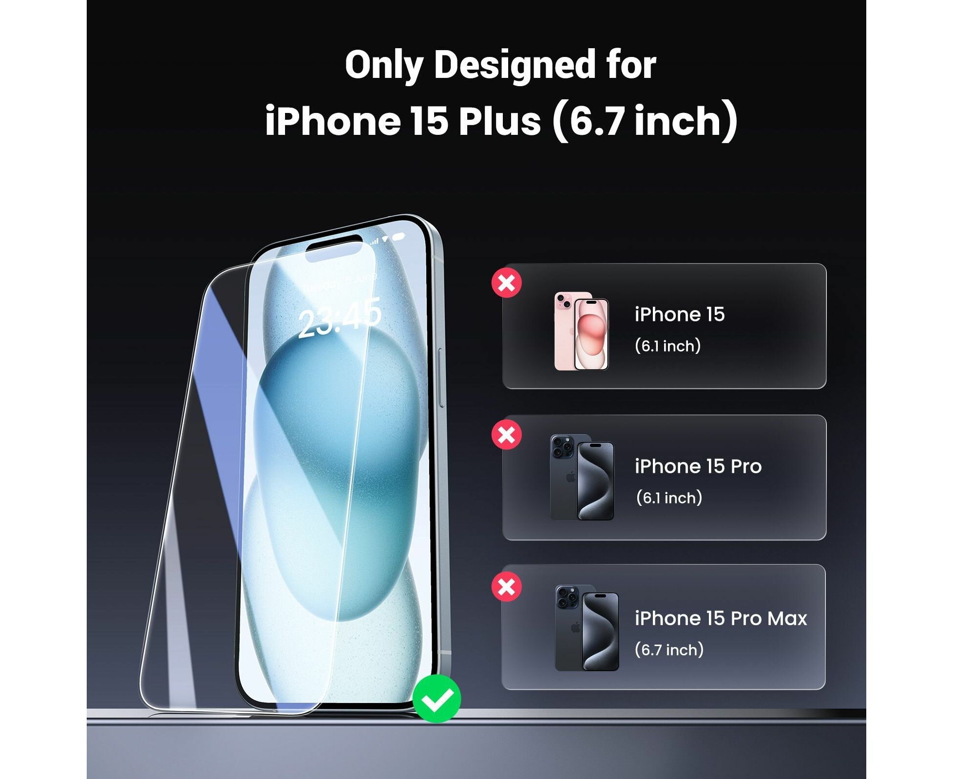 Защитное стекло UGREEN SP370 25589 HD Screen Tempered Protective Film iPhone15 Plus 6.7 inch 2pcs Transparent