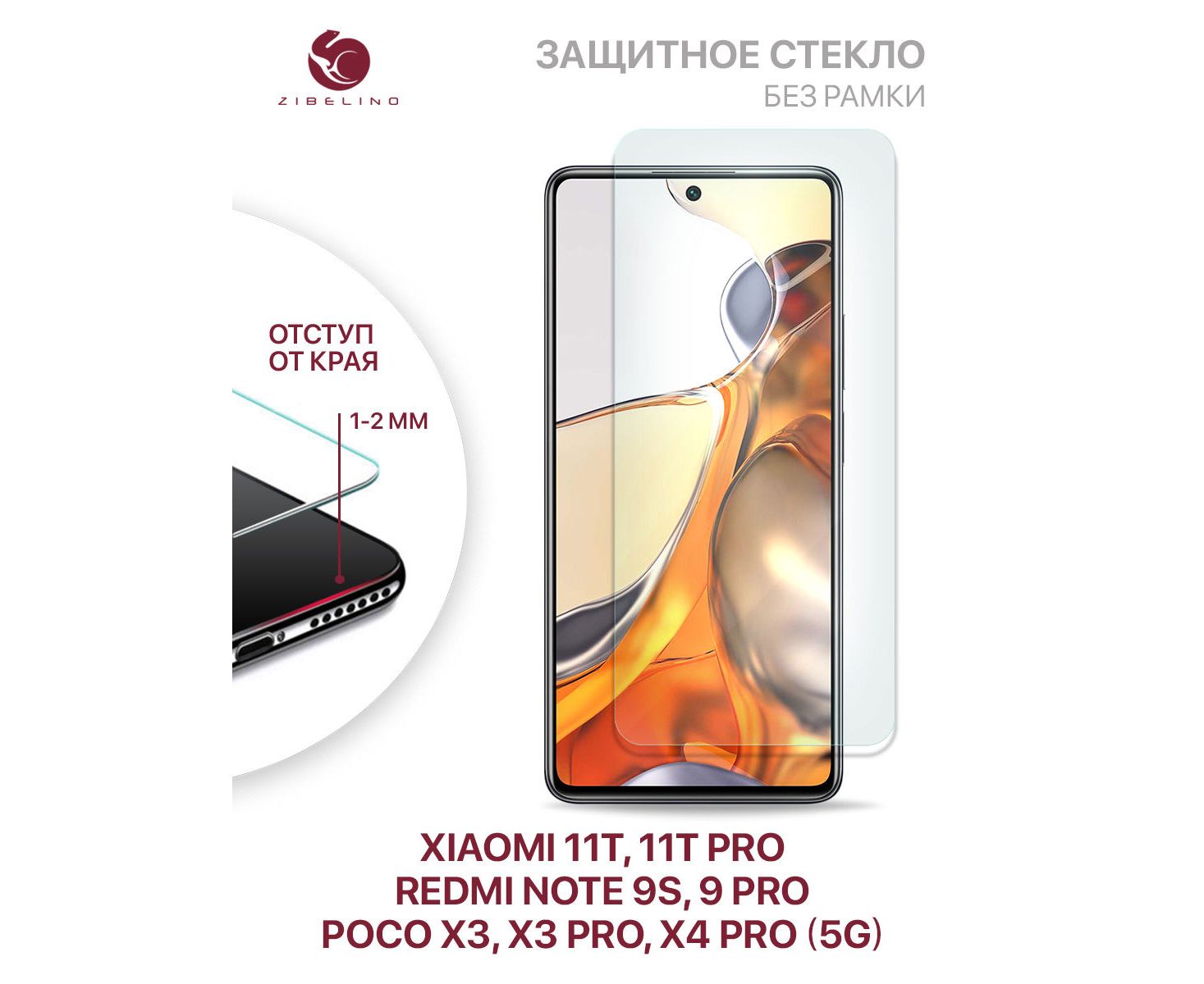 Защитное стекло для Xiaomi Redmi Note 9S, 9 Pro, 11T, 11T Pro, Poco X3, X3 Pro, X4 Pro (5G) без рамки, с отступом от краев (Ксиоми 11Т 11Т Про Редми Нот 9S 9 Про Поко Х3 Х3 Про Х4 Про 5G)