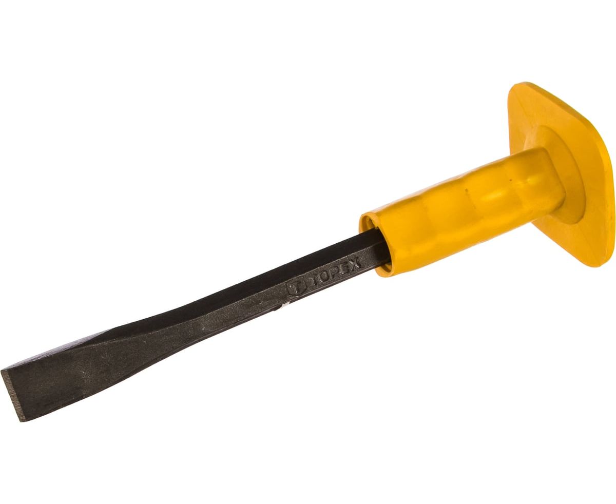 Зубило TOPEX 03A139 с пластмассовым фартуком для защиты руки, легированная сталь, шестигранное сечение