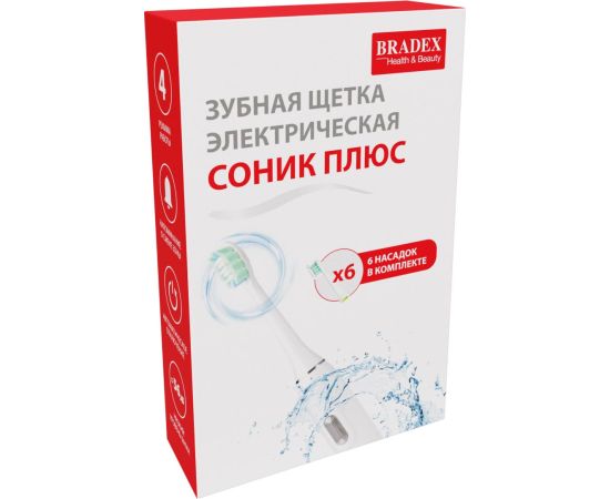 Зубная щетка электрическая BRADEX KZ 1546 Соник Плюс 6 насадок белая